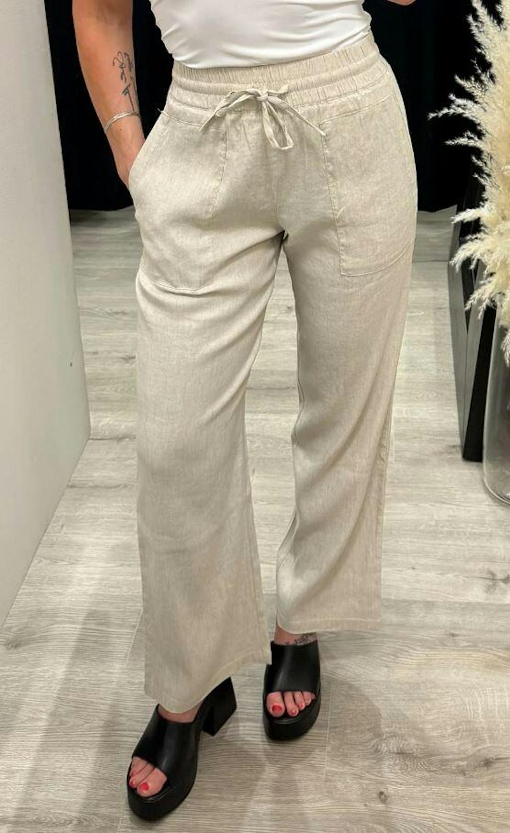 Леки и удобни дамски панталони от памук и лен – идеални за лятото, с еластичен колан и джобове. Перфектен избор за почивка, плаж или разходка.