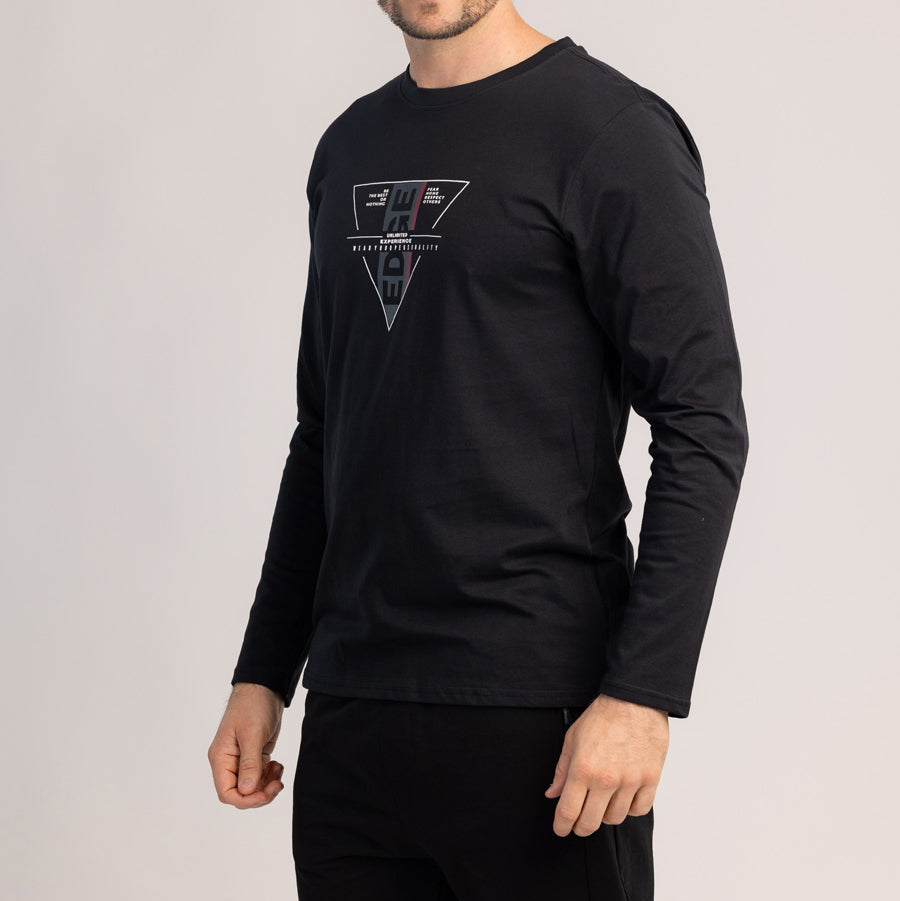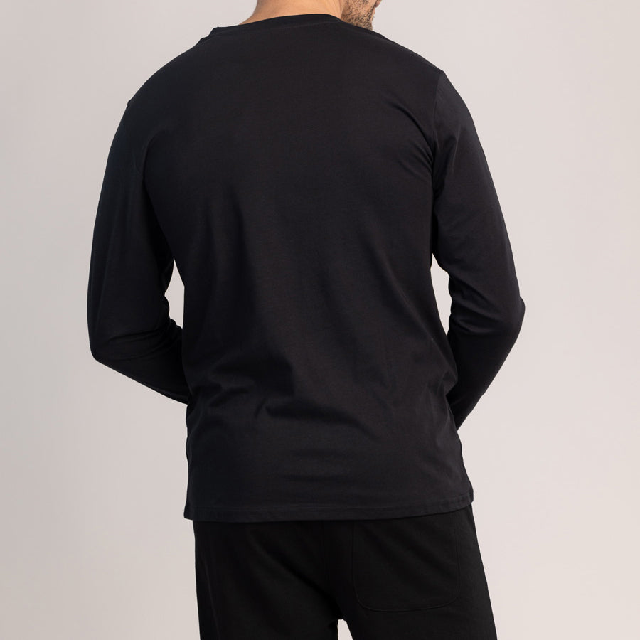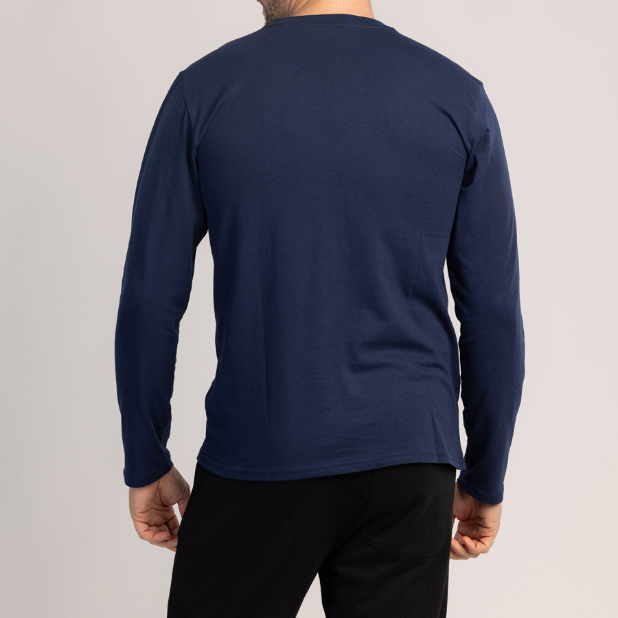 Памучна тениска с дълъг ръкав, която съчетава комфорт и модерен вид за ежедневно носене. Меката, дишаща материя прилепва удобно към кожата, а класическата кройка осигурява перфектно, неограничено прилягане.