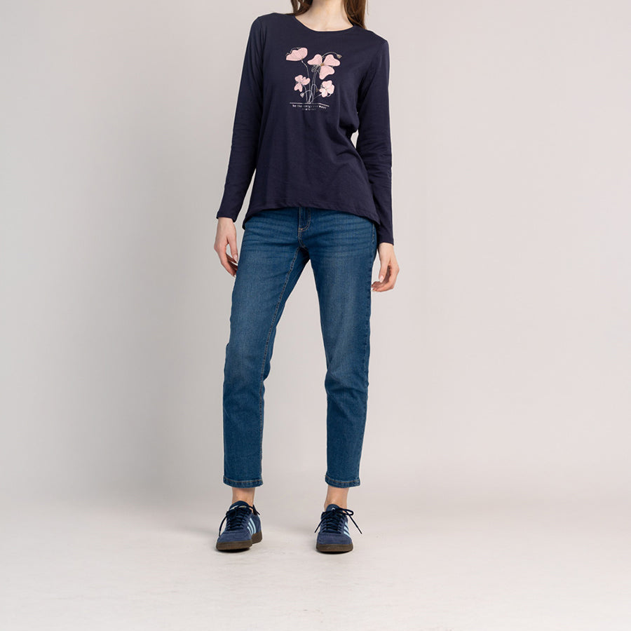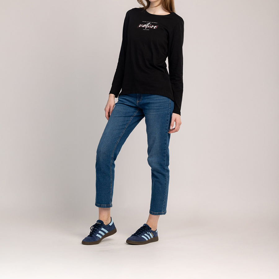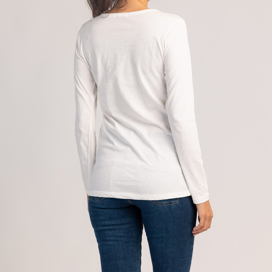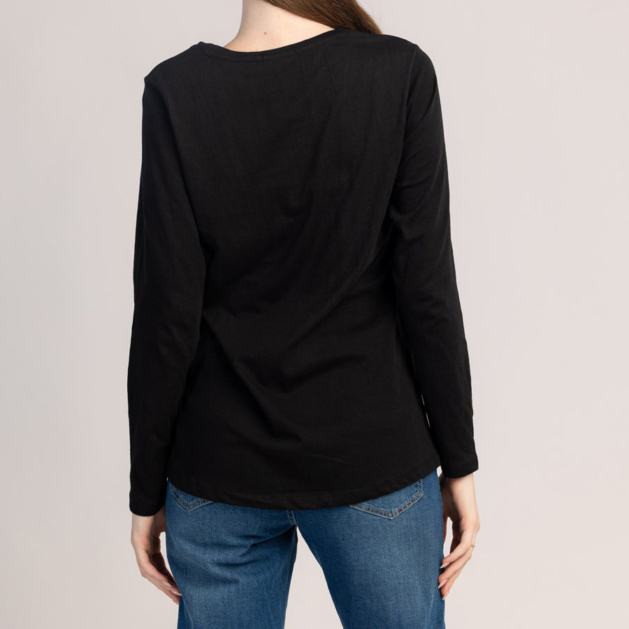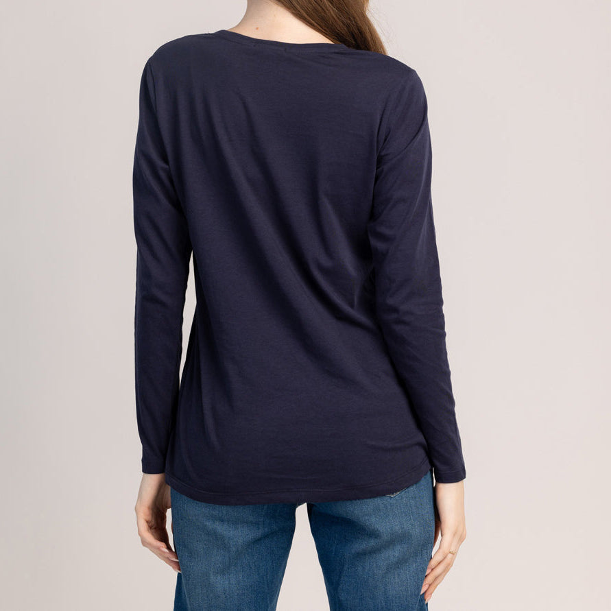 Памучна тениска с дълъг ръкав, която съчетава комфорт и модерен вид за ежедневно носене. Меката, дишаща материя прилепва удобно към кожата, а класическата кройка осигурява перфектно, неограничено прилягане.