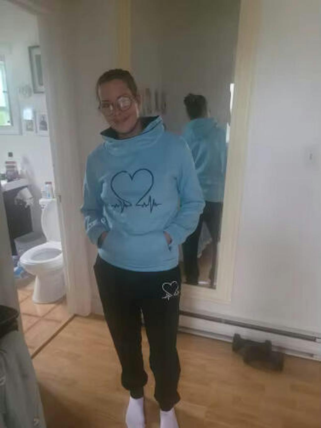 Този уютен комплект включва топъл суитчър с качулка и подходящ панталон. С красивия си мотив WARMFLEX™ ще гарантира, че ще останете стилни, докато тичате или спортувате.